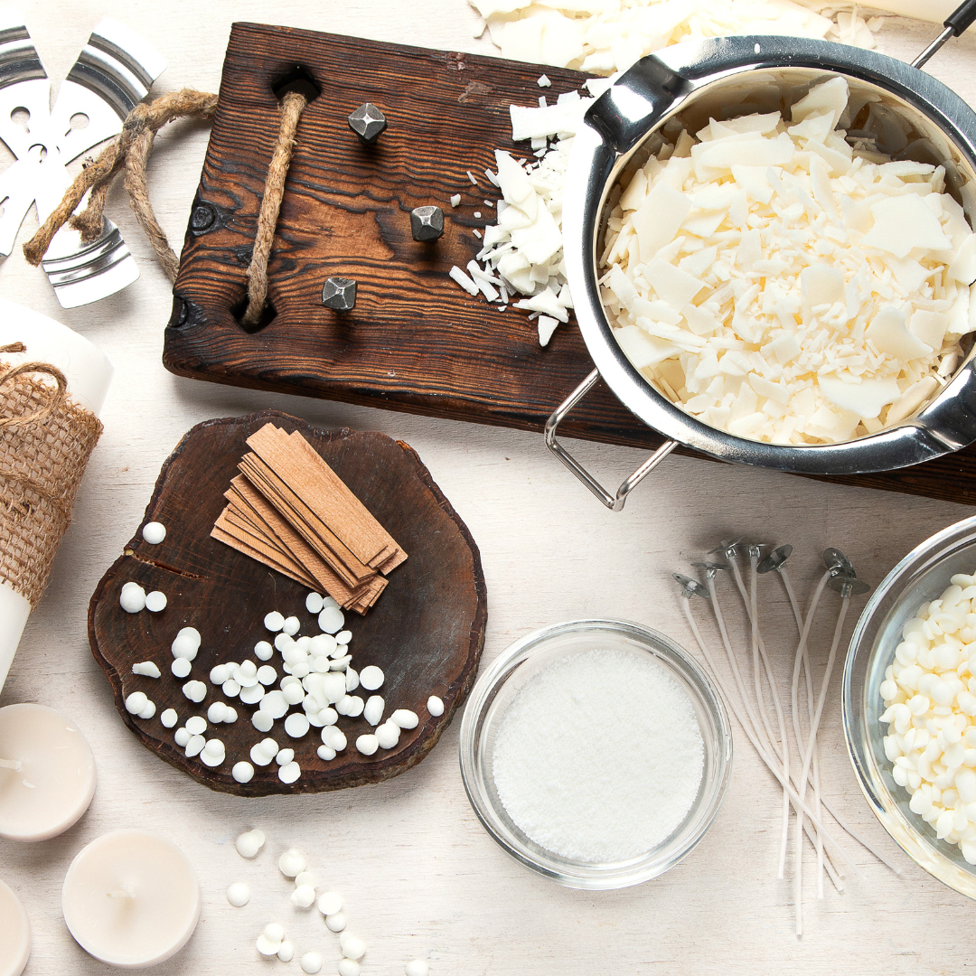 includes: each kit comes with pre measured wax, a wick and holder, fragrance oil, a color option, a vessel in your chosen color, a pouring cup, a stirring stick, and step by step instructions.