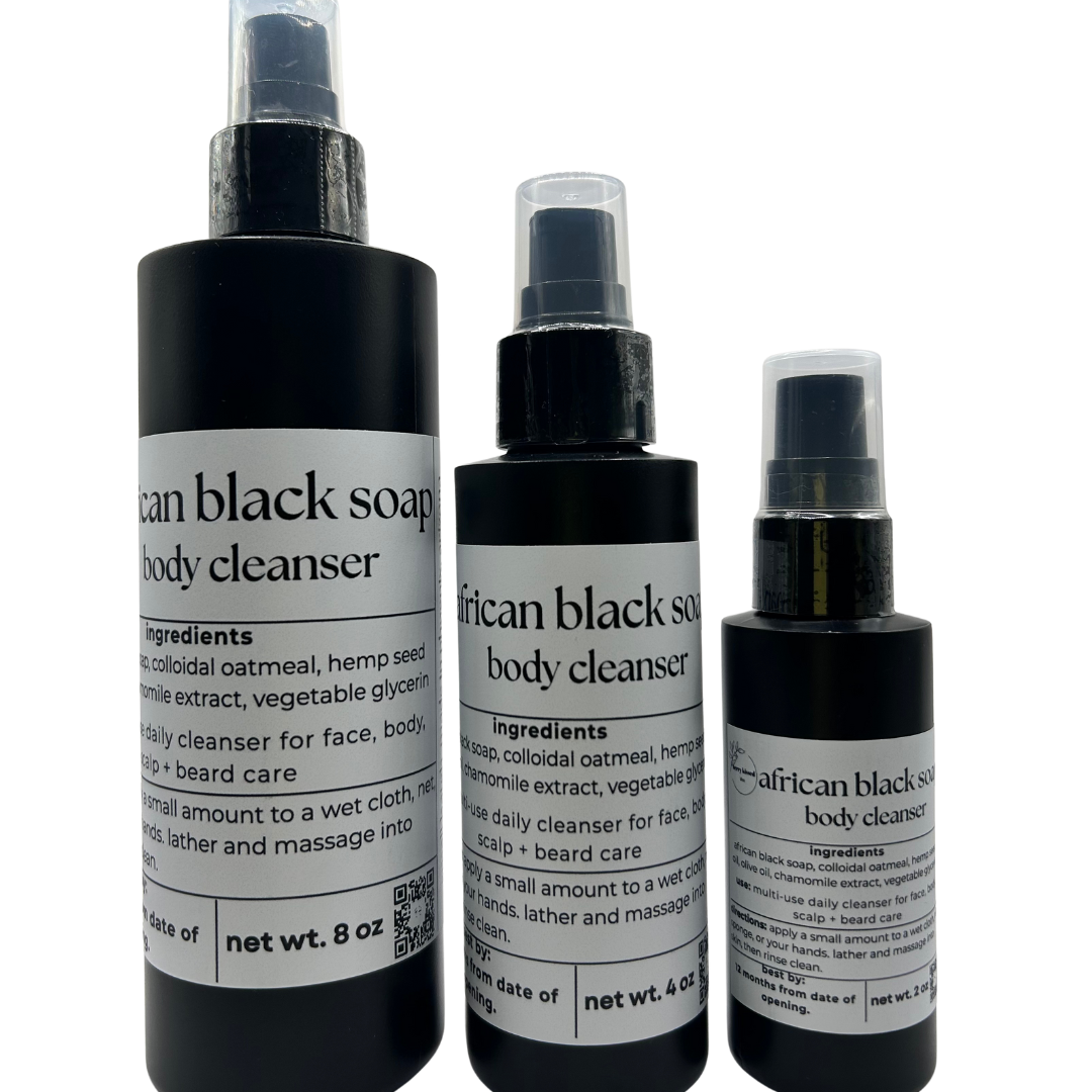 ingredients: distilled water, raw african black soap, hemp seed oil, colloidal oatmeal, olive oil, chamomile extract, vegetable glycerin, optiphen plus