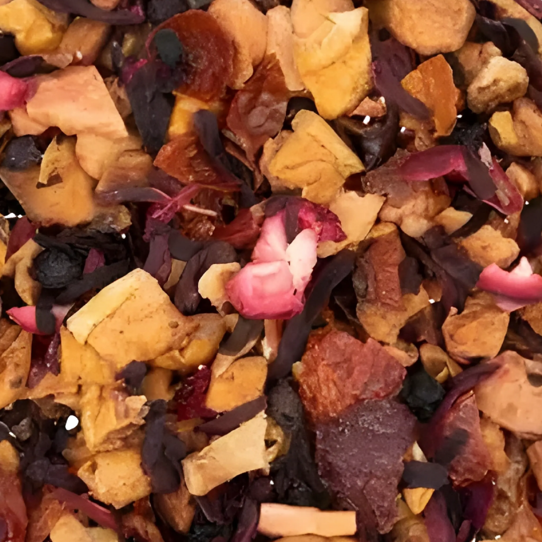 flavor profile: crisp apple and tart cranberry with a juicy berry brightness, softened by hibiscus and rosehip for a warming, fruit-forward cup.