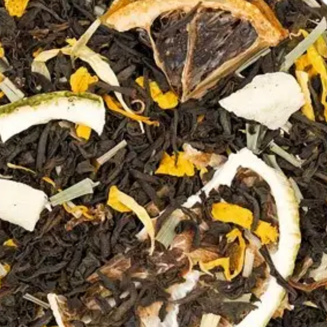 flavor profile: bright lemon and tangerine layered over smooth black tea, softened by currants, blackberry leaves, and moringa. a lively, dessert-inspired cup with the sweetness of lemon cake and a refreshing citrus finish.